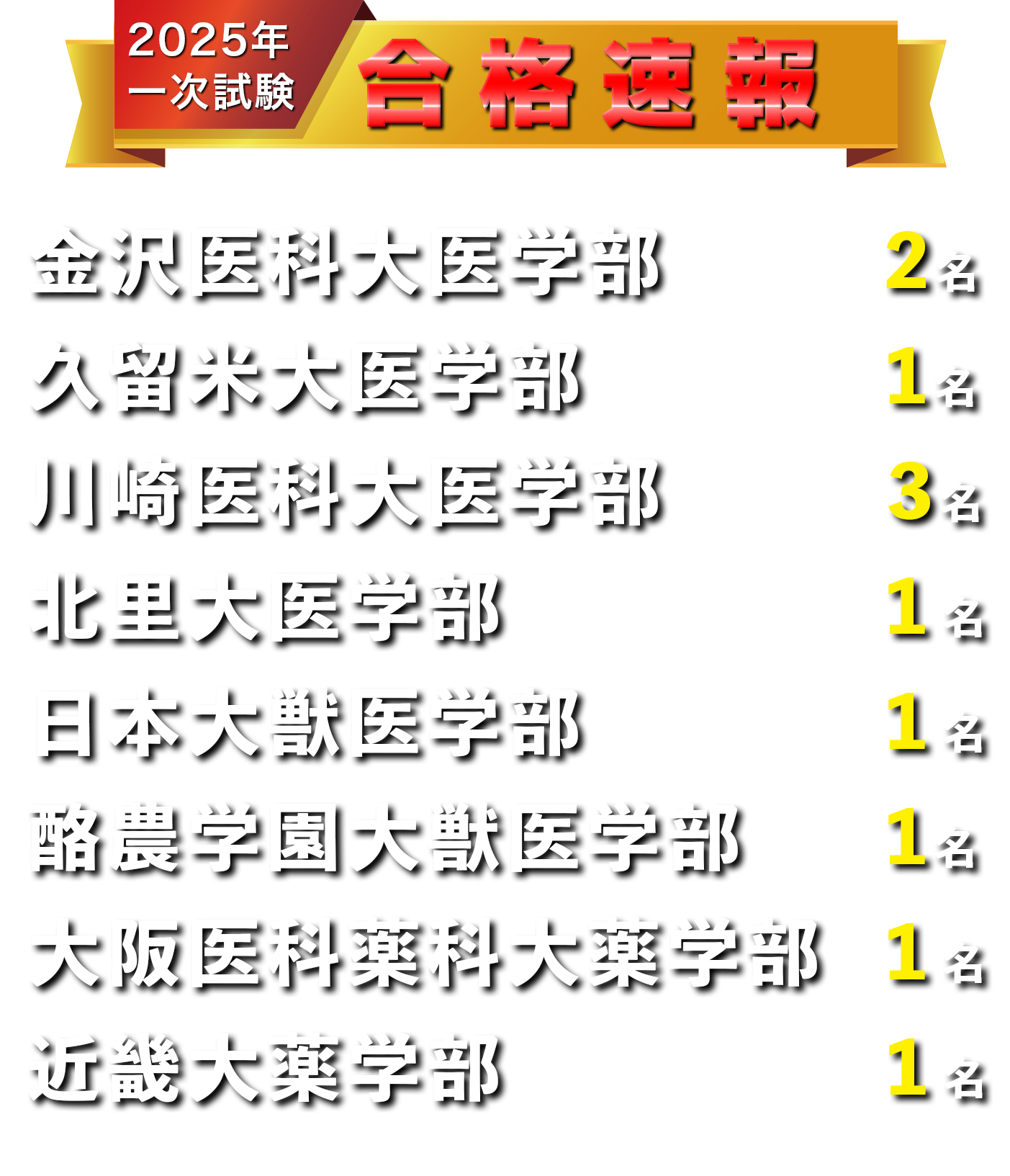 - 志望校に「上位合格」出来るよう、問題の難易度が高い医学部過去問での演習。私立では、慶応大、慈恵医大、日本医科大、大阪医科大、国立では、東大、京大、阪大や旧単科医大などでの過去問演習。